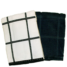 32s/2 yarn 30*17 inch 2-Piece Solid and Check Kitchen Towel Set with black |